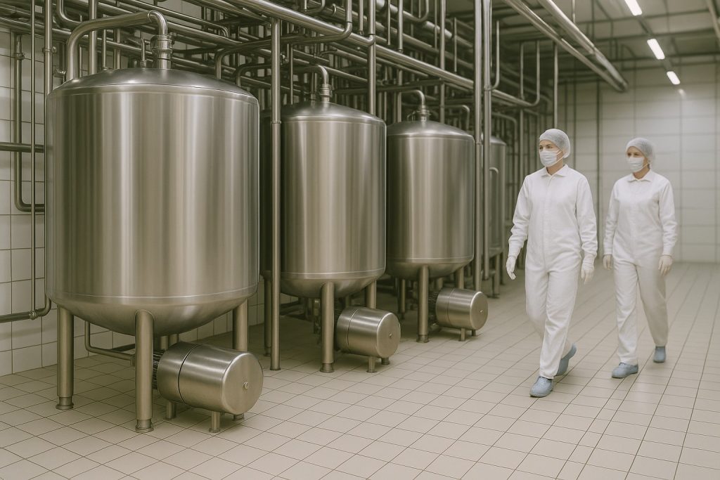 All wetted parts must be made from food-safe materials such as 316L stainless steel or FDA-approved elastomers. - Dead-Leg-Free Internal Design